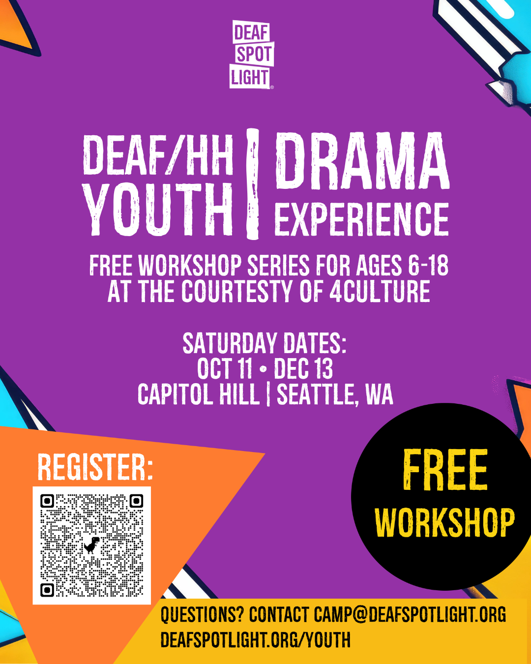 With your support, we create opportunities by and for people with lived experience. Your gift today fuels the essential, behind-the-scenes work that makes it all possible—renting theatre space, compensating the Seattle Deaf Film Festival team, keeping our office open, and ensuring our programs have what they need to thrive. It may not sound glamorous, but it’s the foundation that makes every performance, exhibit, and film happen.