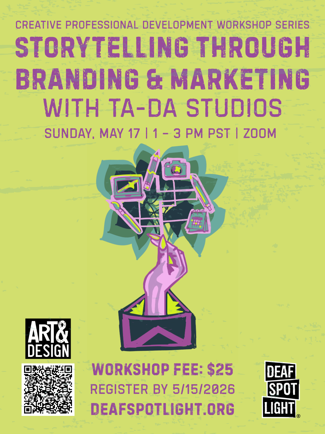 The workshop will be led by Nikoyla and Eric, Co-Founders of Ta-Da Studios, that supporting with marketing strategies for Deaf Art Communities. This workshop will cover how to start up business an artist, and things to need to know before you start up your own art business.
