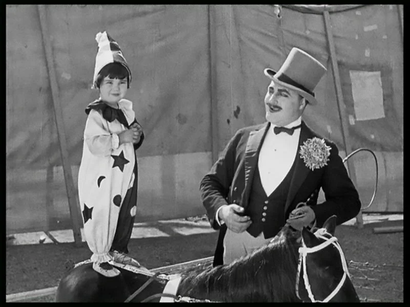 A kidnapped tot ends up entertaining a crowd as an animal trainer and bareback rider at the circus.